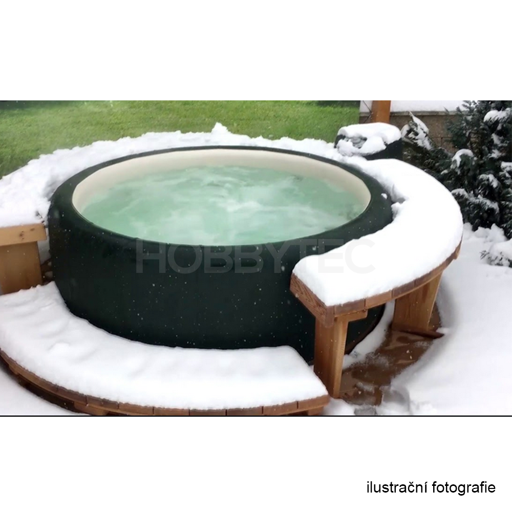 Nafukovací vířivku můžete používat celoročně. Dokonce iv zimním období až do -40 °C. Je však třeba dbát na to, aby při mrazivém počasí byl ohřev vody funkční a zapnutý. Teplota vody nesmí klesnout pod 4°C, aby voda v trubkách nezamrzla. Součástí balení je také termoizolační kryt, který snižuje ztráty tepla a poskytuje bezpečnostní funkci. Zároveň tak zabráníte vniknutí nečistot do vody. Kryt se zajišťuje pomocí bezpečnostních popruhů, které jsou po obvodu vířivky. Z vnější strany najdete také dva úchyty, které usnadňují manipulaci s vířivkou. Také její údržba nevyžaduje zásahy a úkony, které byste nezvládli sami.
