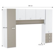 Nástavec je vyrobený z fóliované DTD v barevné kombinaci: bílá a šedohnědá taupe. Skládá se ze dvou jednodveřových skříní, v jedné jsou dvě šatní tyče, v druhé jsou police. Dále disponuje třemi šuplíky, velkou policí a nad policí ještě dvě prostorné skříňky.