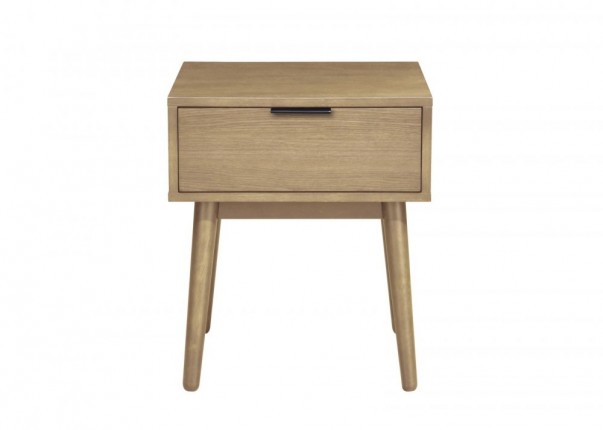 Stolek je vyrobený v kombinaci dýhované MDF a kaučukovníkového dřeva ve dvou barevných variantách: přírodní a ořech.
