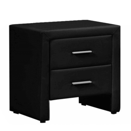 Elegantní noční stolek CASTEL na nízkých nožičkách je potažen ekokůží ve dvou barevných variantách: bílá a černá.