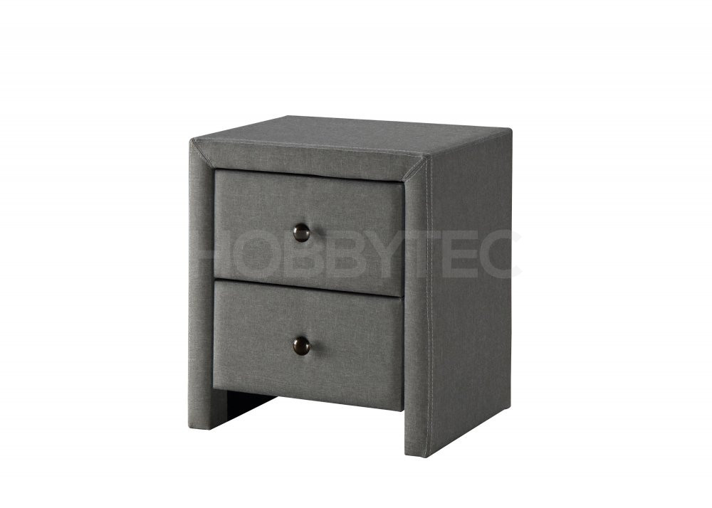 Čalouněný noční stolek PRIMA 2 je vyroben z DTD a je celý potažený šedou látkou.
