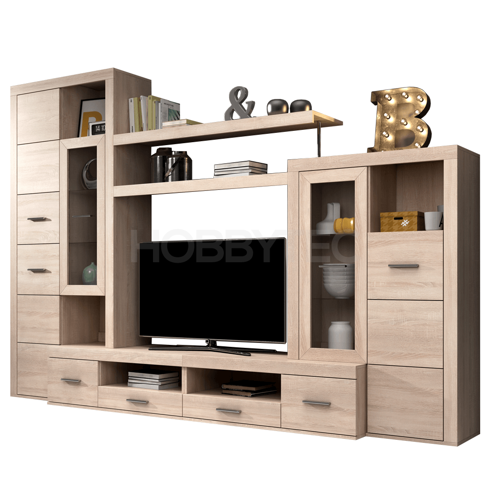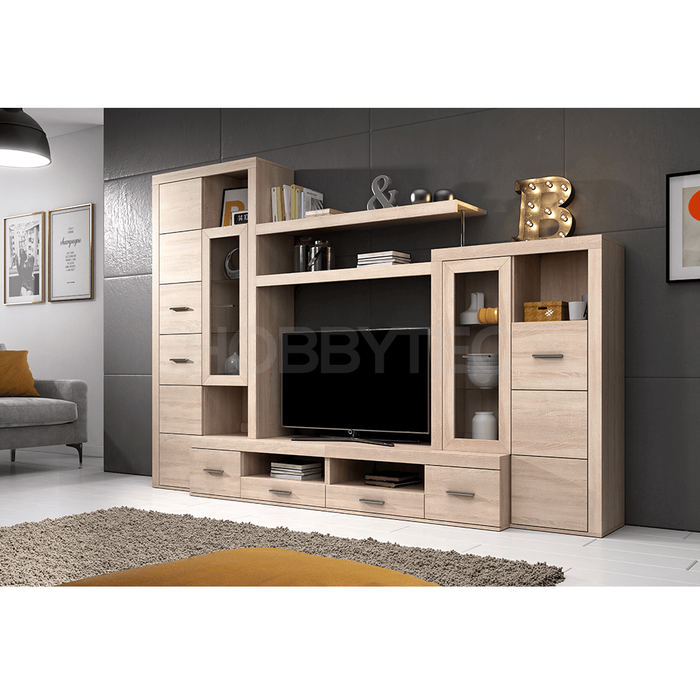 Skládá se z jedné větší a jedné menší skříně, jejichž součástí jsou vitríny s skleněnými dvířky, dvou polic a RTV stolku. Uvnitř skříněk s plnými dveřmi jsou dvě police. RTV stolek poskytuje otevřený úložný prostor, ve spodní části zas najdete čtyři skříňky.