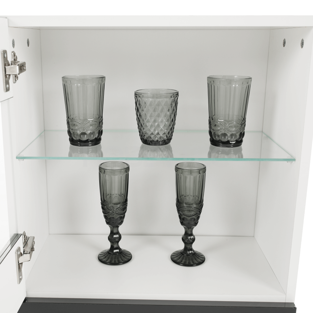 Skládá se z RTV skříňky, dvou závěsných skleněných skříněk a dvou polic.