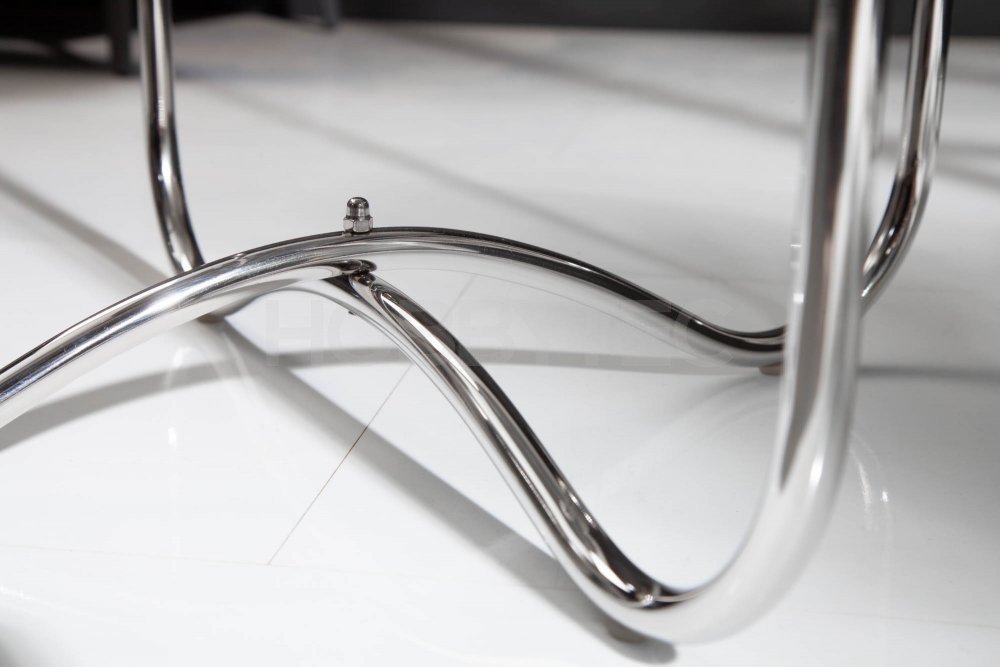 Deska z leštěného šedého mramoru a stříbrně lakovaná ocelová podnož vytváří společně kontrast, který do vašeho interiéru vnese šmrnc. Stolek se hodí do moderních i klasických interiérů, může být použit i ve stylu Art Deco.