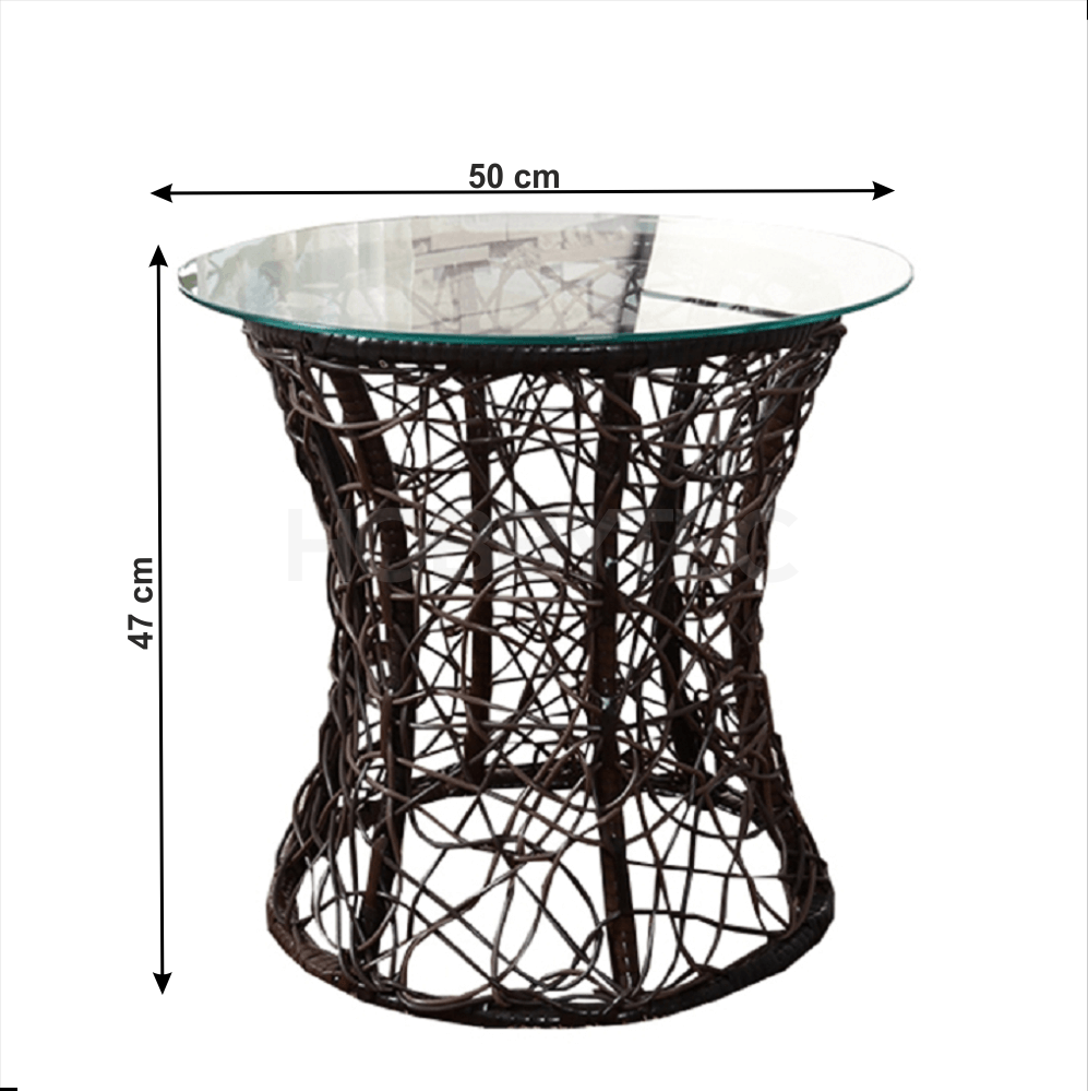 Tento příruční stolek z umělého ratanu a tvrzeného skla, je vhodný na terasu nebo zahradu, ale krásně se bude vyjímat i na balkoně.