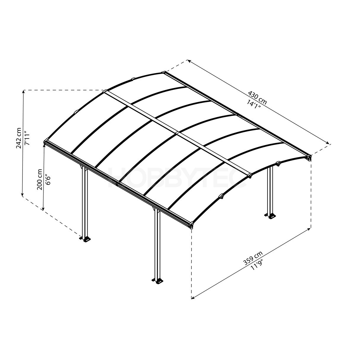 Arcadia 4300 - hliníkový (montovaný) přístřešek s obloukovou střechou