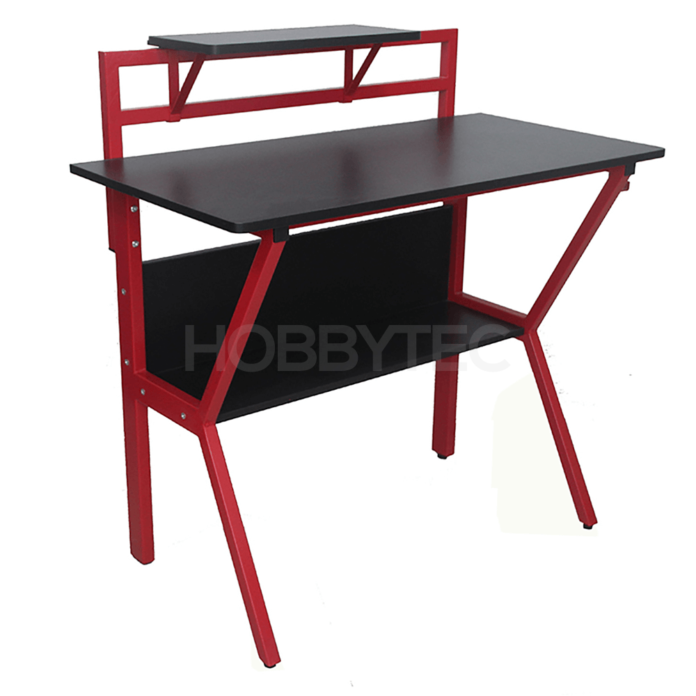 Vyroben je z kovu s červeným nátěrem a deska je z MDF laminované v černém provedení.
