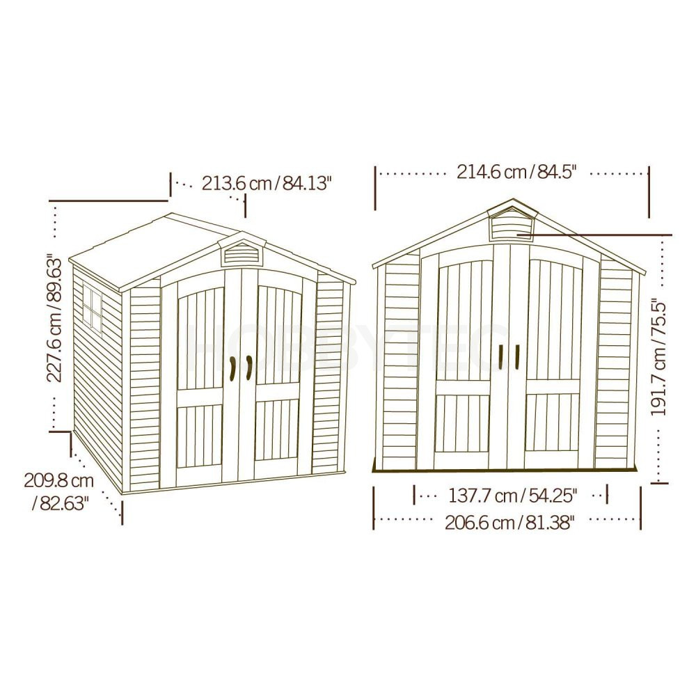 Zahradní domek má nosnou kovovou konstrukci a dvojité stěny, střecha, dvojité dveře, podlaha jsou vyrobeny z masivního velmi odolného a prakticky nerozbitného plastu. Plastová protiskluzová podlaha je součástí domku (je v ceně).
