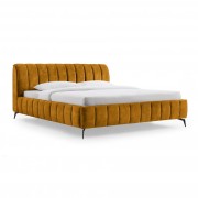 Elegantní postel AMYKLAS v retro stylu s vysokým a dekorativně prošívaným čelem se stane pýchou vaší ložnice. Je čalouněná sametovou látkou Velvet ve dvou barevných variantách: žlutá a šedá. Stojí na designových kovových nohách v černé barvě.