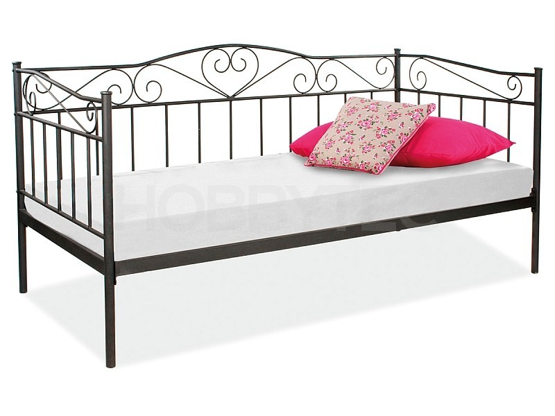 Postel je vyrobená z kovu s romantickým zdobením ve třech barevných variantách: bílá, růžová a černá.