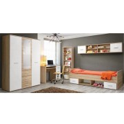 Postel EMIO Typ 04 s úložným prostorem a policemi je vhodná na zařízení dětských pokojů. Postel můžete kombinovat s dalším nábytkem série EMIO z naší nabídky.