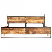 Rám postele má masivní konstrukci vyrobenou z hrubého mangovníkového dřeva a ocelového rámu, a proto má dlouhou životnost a je stabilní. Rolovací rošt je vyrobený z masivního borového dřeva a také přispívá k robustnosti rámu. Předvrtané otvory v koncových lamelách můžete použít k upevnění roštu k rámu, a zajistit ho tak na místě. Rošt lze navíc snadno srolovat, když ho právě nepoužíváte. Postel je designovaná v industriálním stylu a je zakončená leštěním, natíráním a lakováním. Rozdíly v kresbě dřeva dávají každému kusu jedinečný charakter.