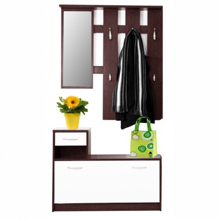 Elegantní sestava předsíňového nábytku MECKI se skládá z věšákové stěny se zrcadlem a botníku.