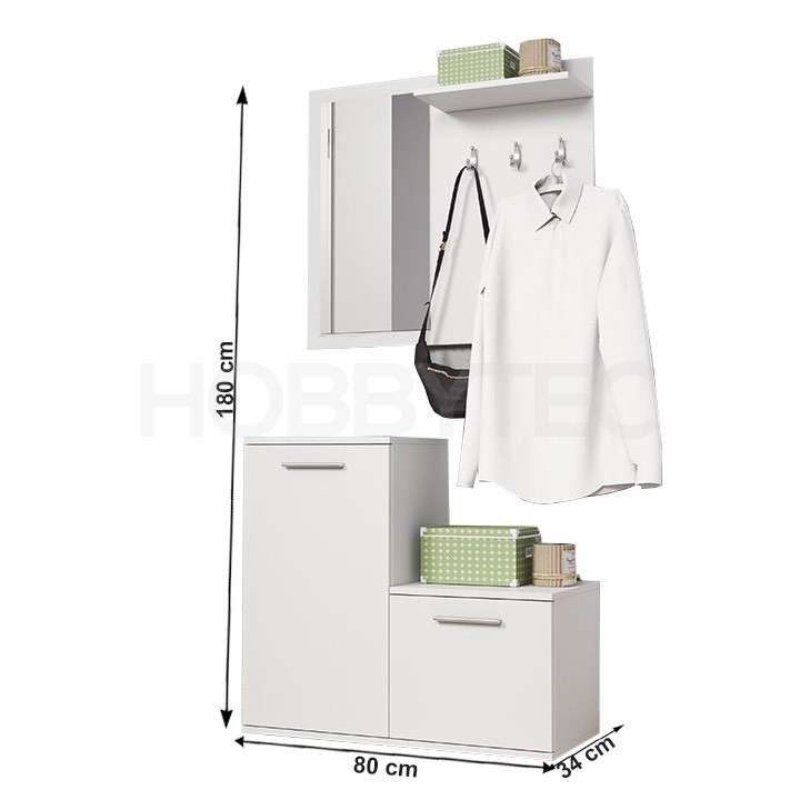 Poskytuje úložný prostor v podobě dvou zavíracích skříněk a věšákové části, nad kterou se nachází jedna police. Součástí je i velké zrcadlo.