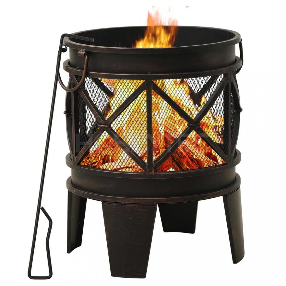 Robustní ohniště je vyrobené z oceli s tepelně odolným nátěrem a skvěle absorbuje a vyzařuje teplo. Má širokou a hlubokou mísu, ve které snadno založíte velký táborák pro celou rodinu. Pletivový kryt vám umožní sledovat hořící oheň a zároveň zabrání odletování jisker a úlomků z bezpečnostních důvodů. V pletivovém krytu je též na obou stranách praktický kroužek, za který můžete ohniště snadno přenášet. Přiložený kovový pohrabáč lze použít jak k sejmutí pletivového krytu, tak k přeskupení palivového dříví.