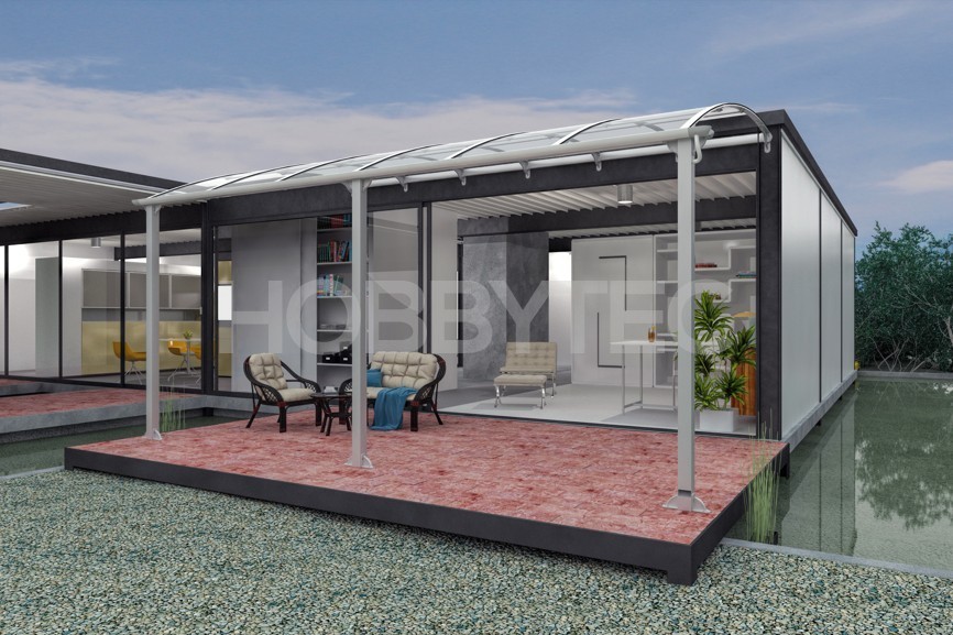 - Materiál hliník, barva konstrukce šedá metalická. Střešní krytina lexan 3 mm, barva kouřová