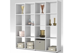 Stůl tvoří deska z dřevotřísky a ocelové nohy v bílé barvě.