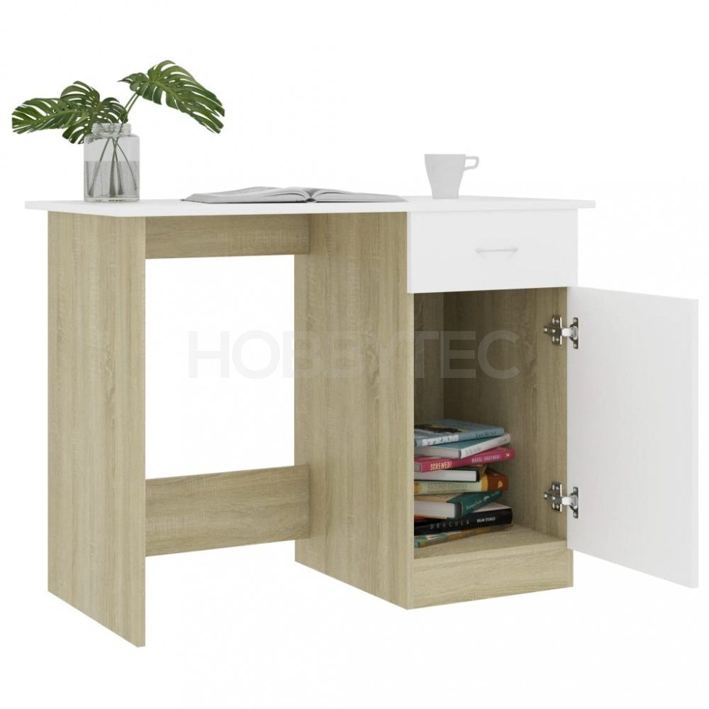 Vestavěná zásuvka a skříňka vám poskytnou spoustu místa na ukládání nejrůznějších věcí, stůl se tedy výborně hodí do menších kanceláří, na kolej nebo do bytů s omezeným prostorem.