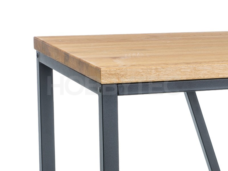Je možné zvolit ze dvou variant - stolní deska vyrobená z masivního dubového dřeva s černou kovovou podnoží nebo stolní deska vyrobená z MDF s přírodní dubovou dýhou na černé kovové podnoži.