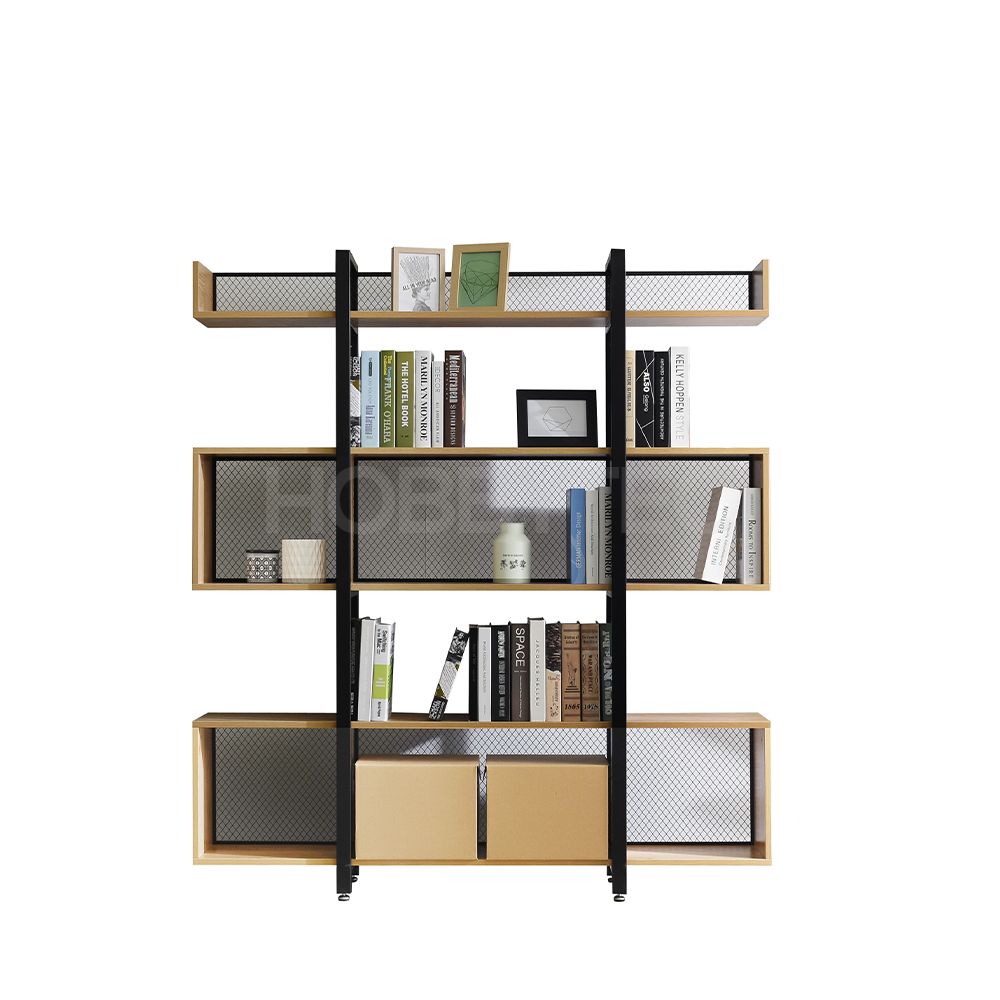 Konstrukce regálu je vyrobena z kovu v provedení černá. Konstrukce je ukončena vyrovnávacími nožičkami. Kovovou konstrukci našeho zajímavého regálu vyplňuje pět polic z DTD s povrchovou úpravou v barvě akáciového dřeva, které působí přírodním dojmem. Regál je na zadní části ohraničený černou kovovou síťkou, která umocňuje a vkusně doplňuje celý design.