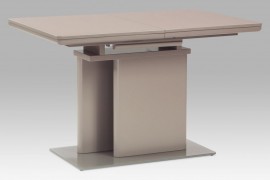 Designový jídelní stůl HT-655 se zajímavě řešenou podnoží s kovovým rozkládacím systémem. Stůl je vyrobený z MDF ve vysokém lesku ve dvou barevných variantách: bílá a lanýžová. Spodní deska je skleněná.