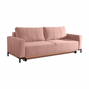 Pohovka je celočalouněná kvalitní látkou Mono ve třech barevných variantách: šedohnědá taupe, starorůžová a tyrkysová. Celou pohovku krásně dotváří bukový rám a stabilitu jí dodávají kovové nožičky v černé barvě. Součástí jsou dva polštáře, které zastupují zádovou opěrku. Sedací část disponuje bonelovou výplní. Pohovka se pyšní úložným prostorem a funkcí rokladu na lůžko o velikosti 200 x 138 cm.