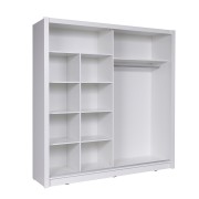 Šatní skříň BIRGAMO TYP 1 vás přesvědčí svou multifunkčností, moderním provedením, barvou i kvalitními materiály. Dvoje posouvací dveře ukrývají velké množství úložného prostoru. Na jedné straně najdete policovou část, ve druhé šatní tyč a jednu polici - viz obrázek. Skříň BIRGAMO byla obohacena o zrcadlo, které je v netradičním tvaru. Skříň díky tomu působí svěže a trendy.