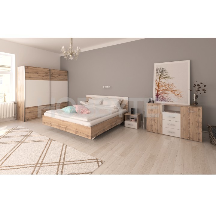 Prostorná šatní skříň GABRIELA vám nabízí dostatek úložného prostoru. Má moderní vzhled a kombinace barevného proveden vytváří příjemný kontrast, který vnese do interiéru světlo. Skříň nabízíme ve dvou barevných variantách: dub wotan / bílá a dub sonoma / bílá.
