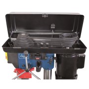 Stojanová vrtačka Scheppach DP 16 VL je výborně vybavený model malé stojanové vrtačky vhodný hlavně pro náročné domácí kutily, do malých dílen ap. Zásadní odlišností od běžných strojů v této třídě je křížový laser, který umožní velmi snadnou orientaci při vrtání a urychlí práci při vrtání větších sérií obrobků. Stroj má robustní ocelovou konstrukci, sklíčidlo 16 mm ve standardu, pět stupňů rychlosti pro práci s tvrdým a měkkým dřevem, kovy i plasty, svěrák pro přidržení obrobku na pracovním stole a silný motor 500 W, který si poradí s jakýmkoliv materiálem. Stroj samozřejmě splňuje poslední požadavky evropské unie na bezpečnost, jako je např. hlavní vypínač umístěný na čele stroje, průhledný kryt sklíčidla ap. Stroj je umístěn na stabilním podstavci s možností pevného uchycení šrouby k pracovní desce nebo podlaze. Podmínky prodloužené záruky naleznete zde.