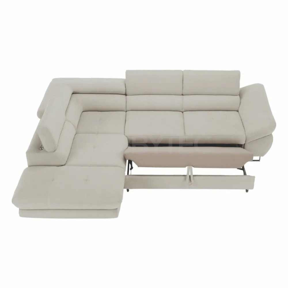Rohová rozkládací sedačka FABIA je čalouněna v jemné a nadčasové šedobéžové taupe barvě z té nejkvalitnější prvotřídní látky s dekorativním šitím sedací části.