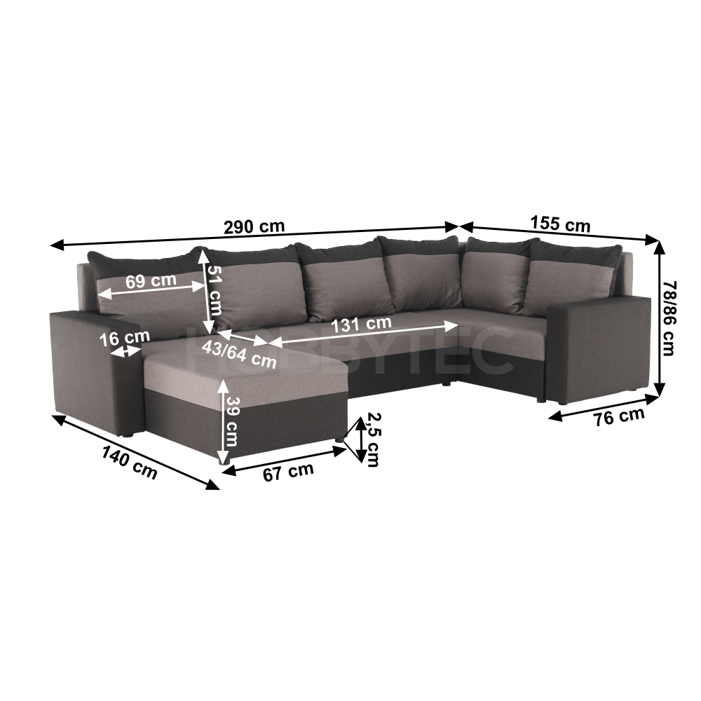LONDON je rozkládací. Plnohodnotně dokáže poskytnout místo k ležení pro 3 osoby. Její plocha na spaní představuje rozměr 119x263cm.