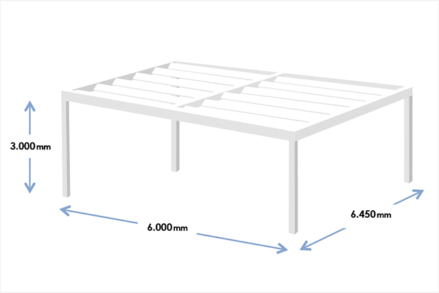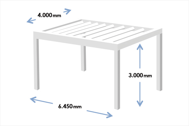 Ceny rozměrů odstupňovaných po 50cm najdete dle výběru velikosti na kartě produtku. Uvedená cena je za nejmenší rozměr 2m x 1,5m. Maximální rozměr bio pergol SEESKY je 6,45m x 4m.
