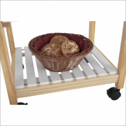 Servírovací vozík na kolečkách RAPID je vyroben z MDF a masivního borovicového dřeva. Jeho přednosti jsou šuplík, kovový košík, podnos a police. 2 kolečka ze čtyř jsou s brzdami.