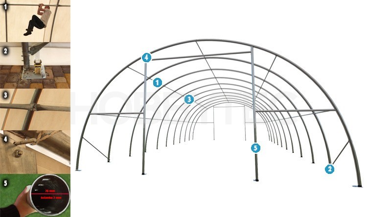 - Plně pozinkovaný rám s ocelovými trubkami: