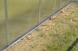 Skleník nepotřebuje žádnou podezdívku, protože konstrukce skleníku je připravena na zapuštění do země do hloubky cca 35 cm.