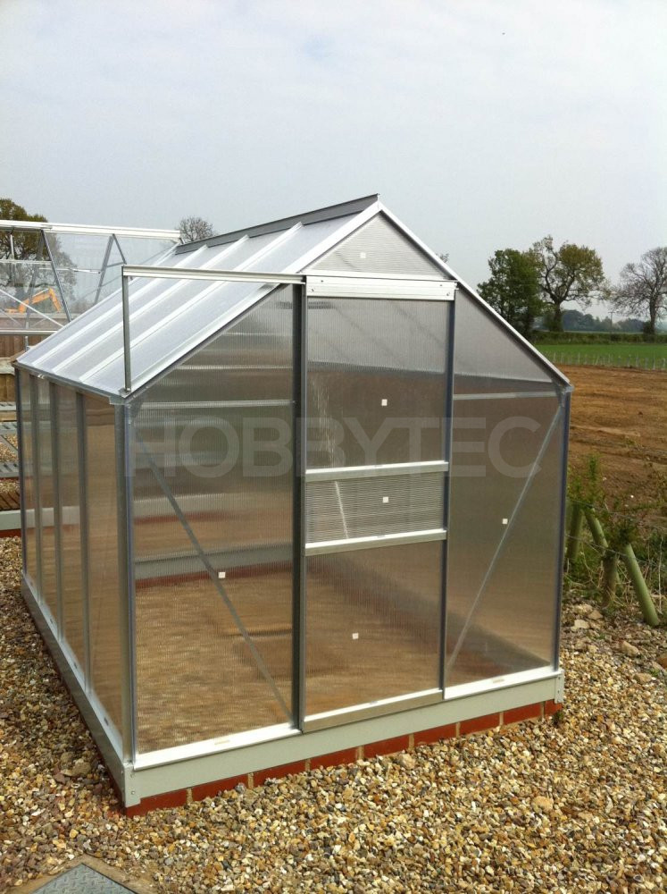 Skleník je vyrobený z eloxovaných hliníkových profilů, prosklení je z tepelně-izolačních dvoustěnných komůrkových polykarbonátových desek síly 4 mm. Polykarbonátové prosklení je do hliníkových H-profilů zasunuté po obvodě, s výjimkou krajních polí a čela skleníku, kde je prosklení zajištěno pevnou polykarbonátovou lištou. Jedná se o velmi kvalitní řešení, které významně zvýšilo celkovou pevnost a stabilitu celého skleníku vůči větru a i sněhovému zatížení.