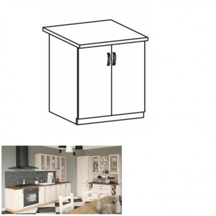 Spodní skříňka ROYAL D60 je s plnými dvířky. Vnitřek skříňky je policí rozdělen na dvě odkládací plochy. Dvířka se otevírají pomocí kovové úchytky.