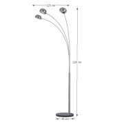 Stojací lampa CINDA má kovové tělo, které stojí na mramorové podstavě.
