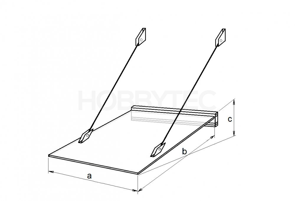 Stříška je zasklená úplně průhledným čirým plexisklem o šířce 10 mm.