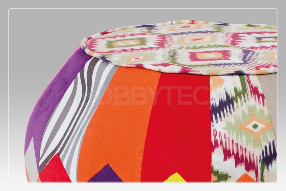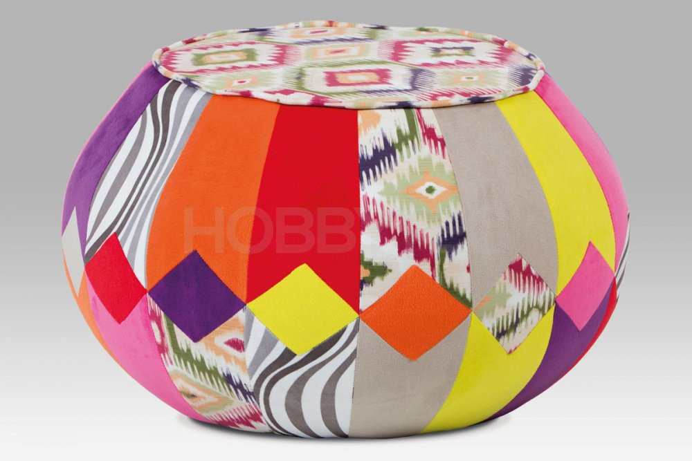 Moderní designový taburet v oblíbeném provedení patchwork, který bude ozdobou každého moderního interiéru či dětského pokoje.