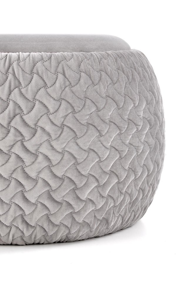 Taburet je vyrobený z látky v šedé barvě. Víko je z přírodní dýhy.
