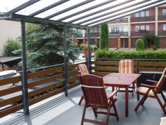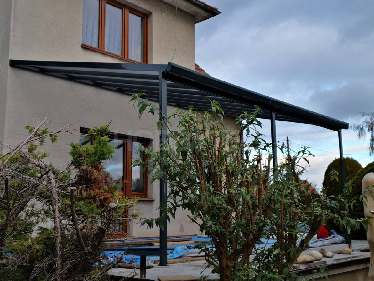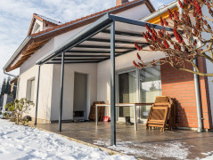 Hliníková pergola Terrassendach Original - Elegantní pergola Gutta v široké škále rozměrů s nastavitelným sklonem. Pergola je vyrobena z robustních hliníkových profilů. Zastřešení řešeno komůrkovým polykarbonátem tloušťky 10 mm se zámky.