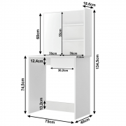 Elegantní bílá nebo dekor dub sonoma zaručují univerzalitu. Součástí stolku je zrcadlo, ve kterém můžete nerušeně zkontrolovat svůj večerní makeup či rychle nanést řasenku před odchodem do práce.