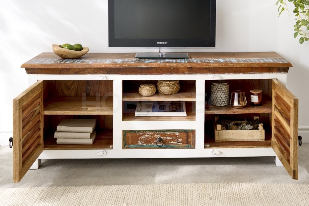 Mimořádný TV stolek IOKASTE zaujme na první pohled. Je vyroben z mangovníkového a recyklovaného dřeva.