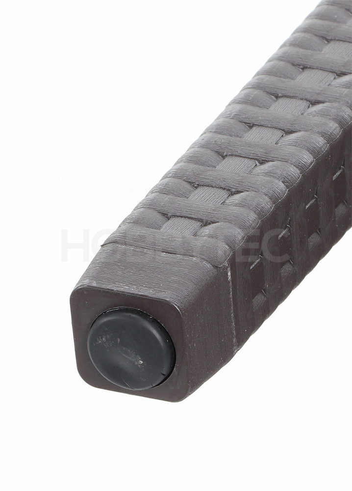 Stůl je ve tvaru obdélníku v imitaci umělého ratanu s UV filtrem.