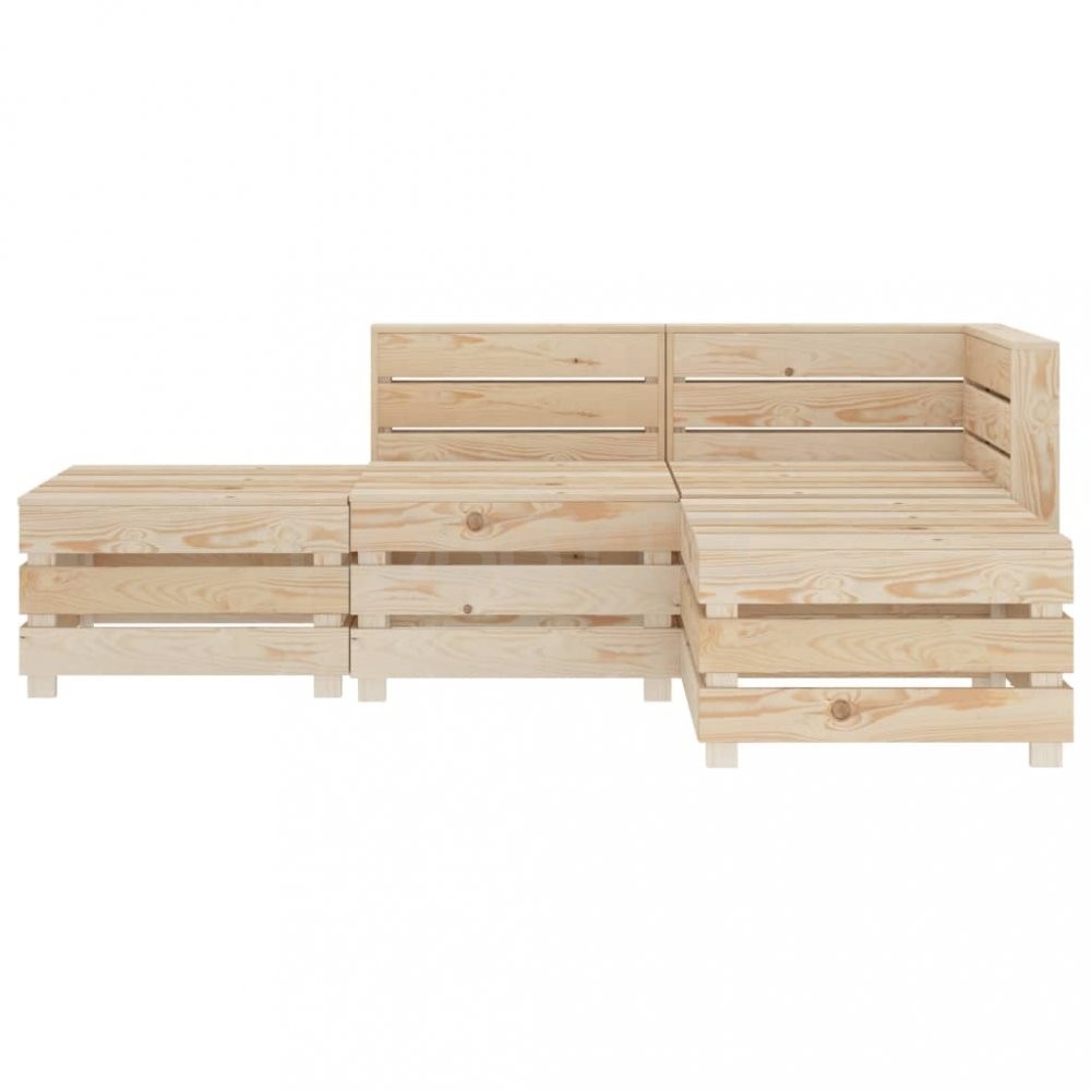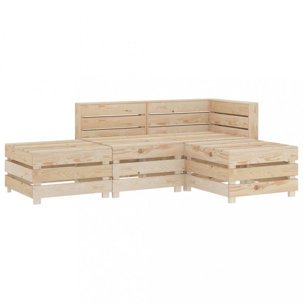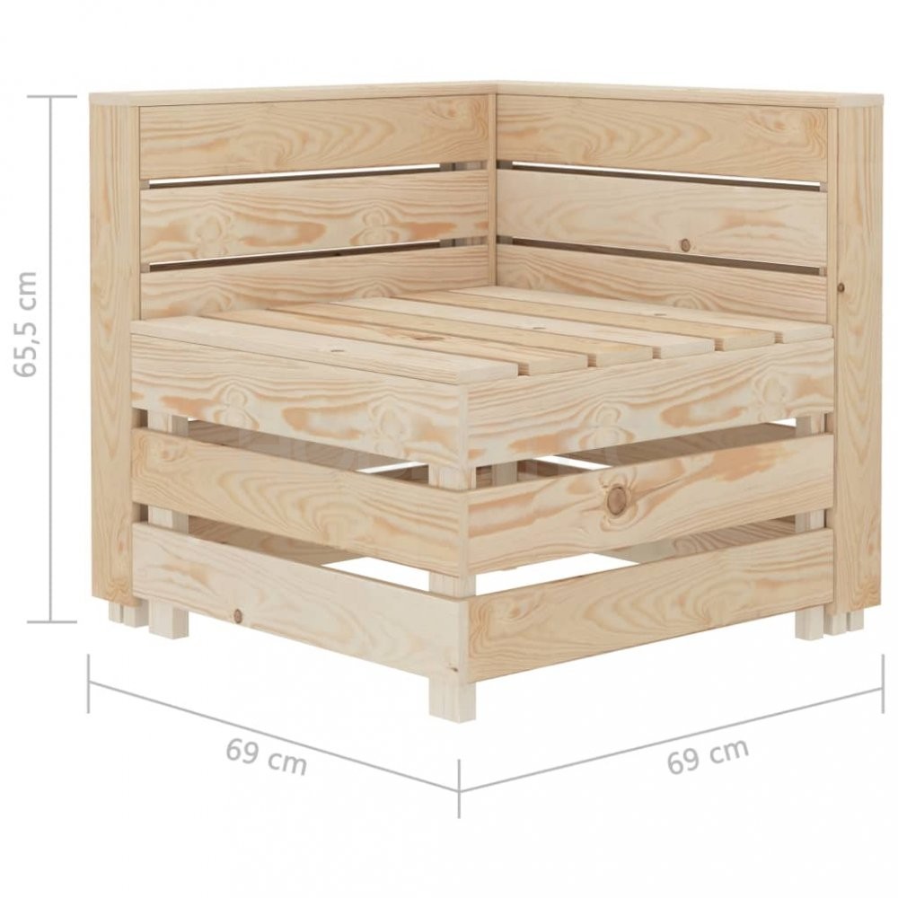 Sestavení zahradního nábytku je snadné. Balení obsahuje 1 rohovou pohovku z palet, 1 středovou pohovku z palet a 2 stolky/taburety z palet. Upozorňujeme, že dřevo je přírodní produkt, a může tak vykazovat jisté nedokonalosti.