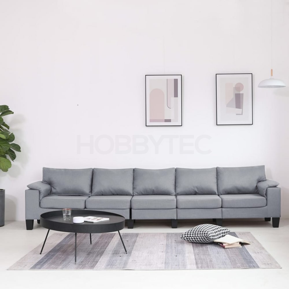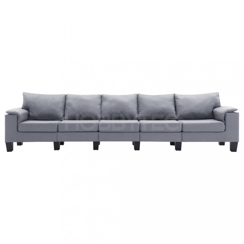Sedačka je čalouněná odolnou látkou a polstrovaná měkkou pěnou, abyste si mohli dopřávat co největší pohodlí. Má bytelný rám z MDF a vysoce kvalitní plastové nohy, což zaručuje její výtečnou stabilitu a odolnost. Sestavení této pohovky pro 5 osob je snadné.