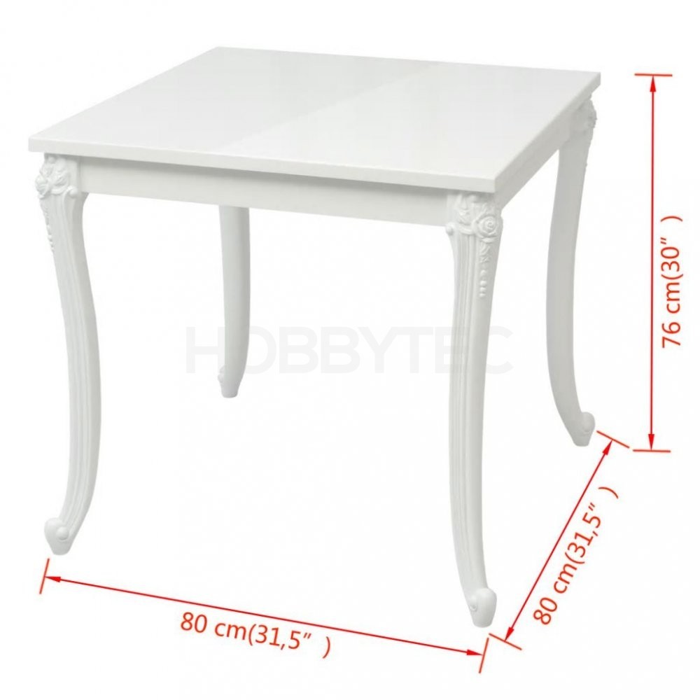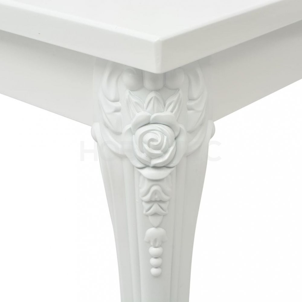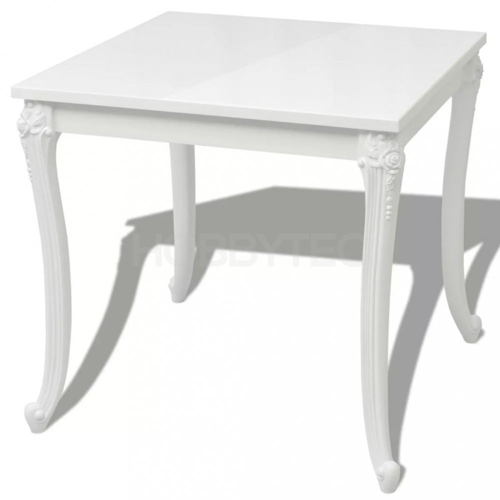 Bílý povrch s vysokým leskem odráží světlo, což přispěje k vašemu celkovému požitku ze stolování. Tento jídelní stůl je vyroben z dřevovláknité desky se střední hustotou (MDF). Má čtyři robustní nohy z lehkého plastu.