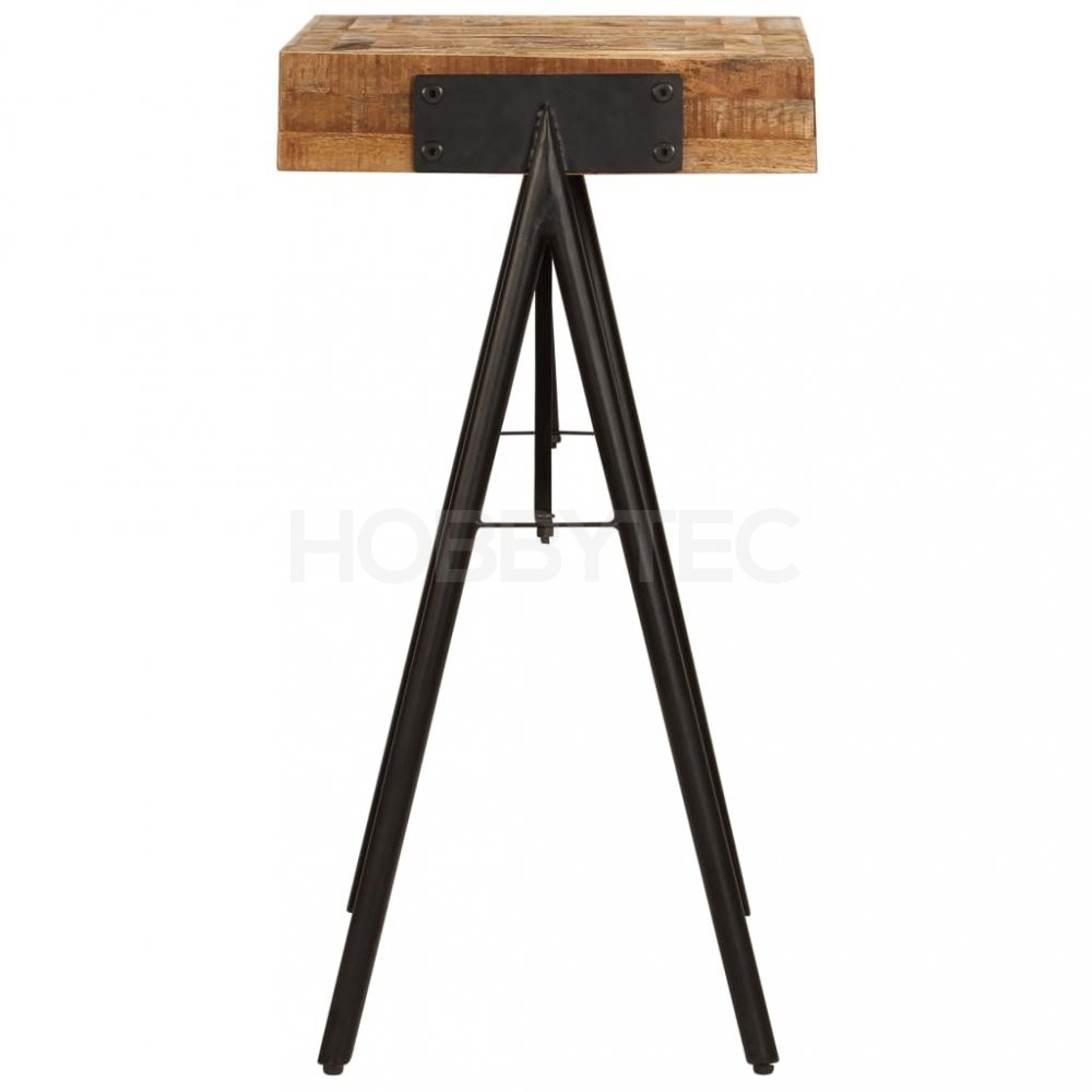 Stolek je vyroben z masivního mangovníkového dřeva, a je proto vysoce stabilní a odolný. Na pevnou desku můžete položit košíky s ovocem, vázy, květináče nebo jiné dekorativní předměty. Ocelové nohy v industriálním provedení stolku dodávají stabilitu. Každý krok výrobního procesu je prováděn s největší péčí, ať už se jedná o leštění, malování a lakování. Starožitný vzor na desce stolu propůjčuje vintage kouzlo. Tento výrobek se snadno sestaví.