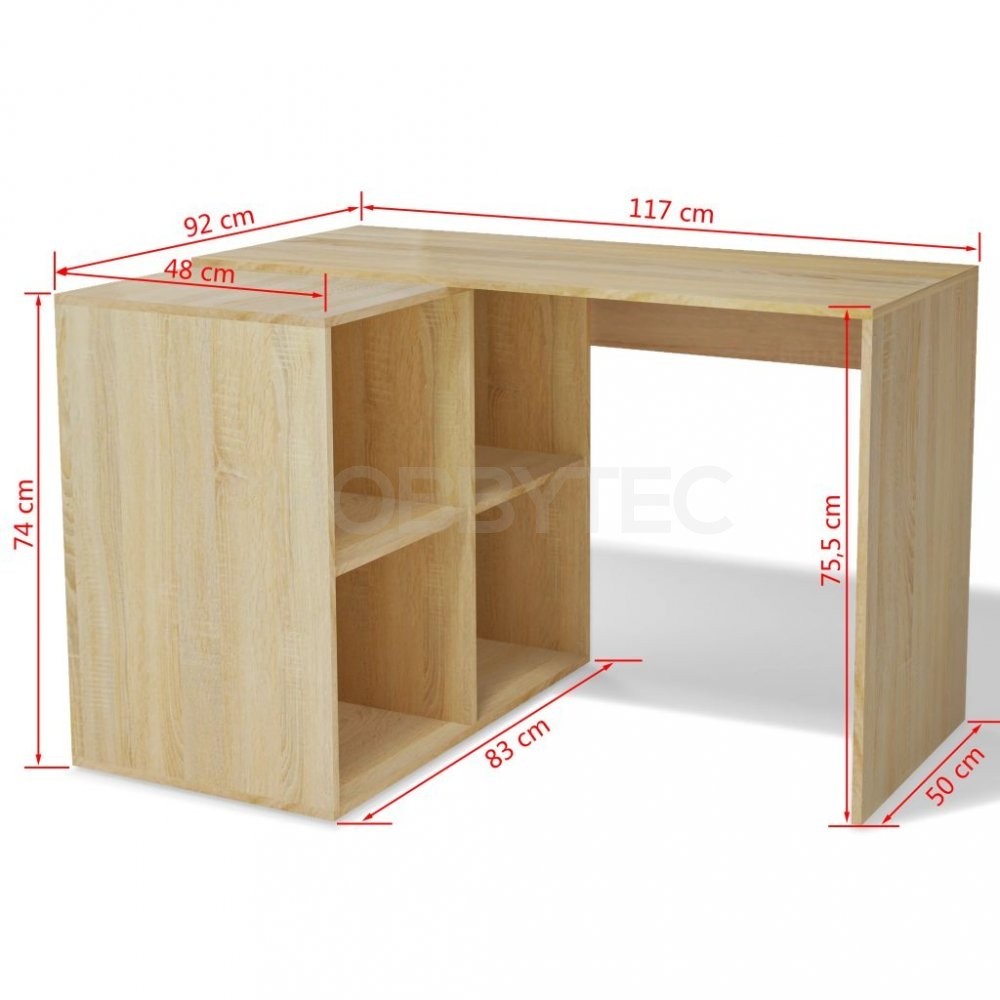Stůl disponuje velkou deskou, takže se při práci nebudete muset omezovat. Knihovnička má 4 přihrádky na ukládání věcí, které pojmou všechny vaše dokumenty a kancelářské potřeby. Takto uložené věci budete mít vždy po ruce. Mimo to můžete prostor využít také pro vystavení různých dekorací. Celý stůl můžete otočit o 90 stupňů tak, aby stál rovnoběžně s poličkou. Jeho montáž je velmi snadná.